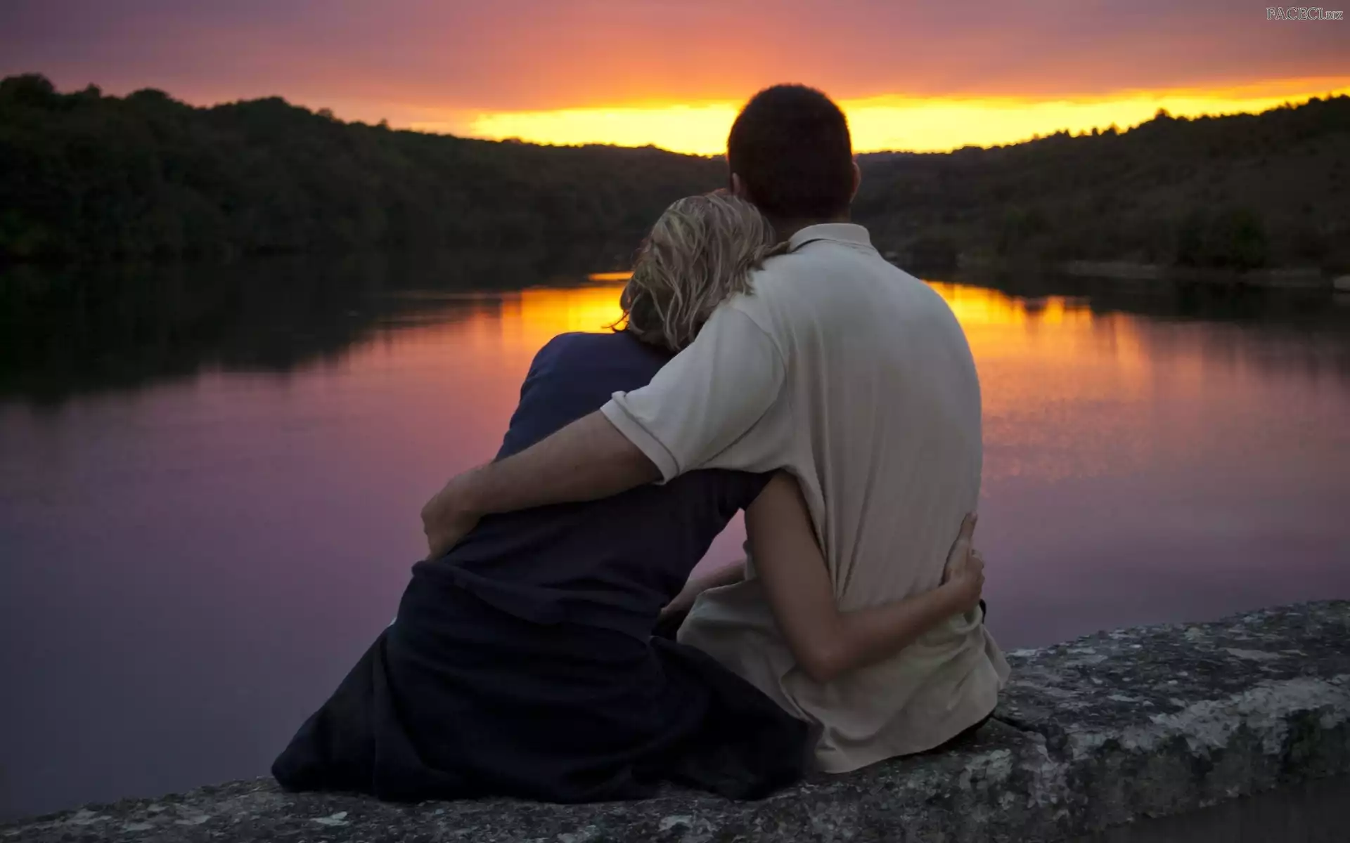 Rzeka, Zakochana, Słońca, Zachód, Para, Most - faceci.biz